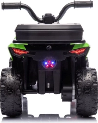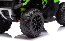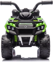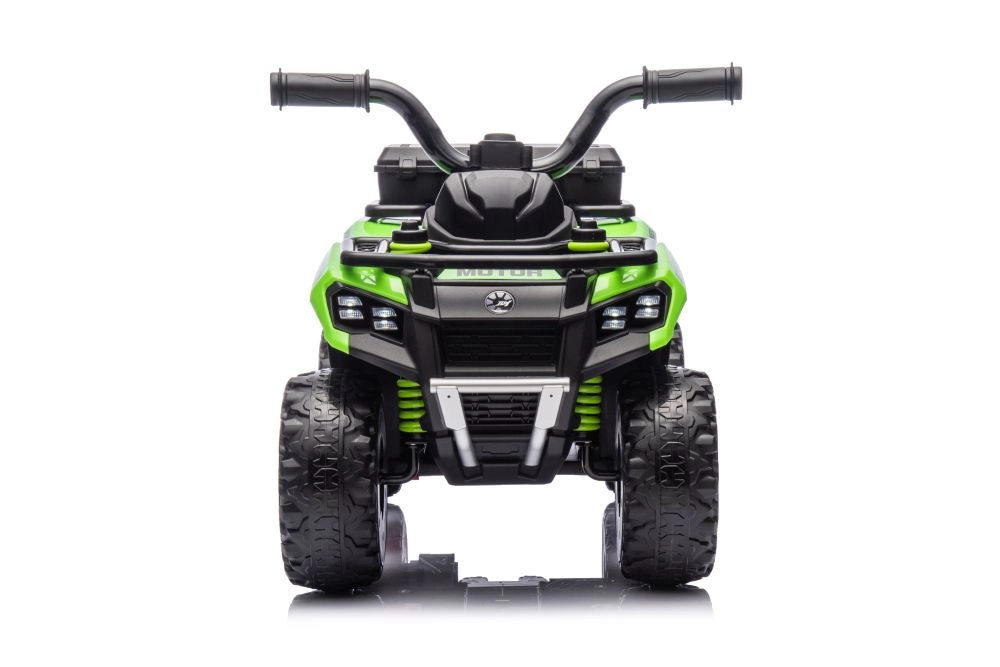 Elektrinis mini quad GTS1155, patrauklios žalios spalvos, sukurtas mažiesiems tyrinėtojams. Dideli, raižyti ratai įveikia nelygius paviršius ir kartu suteikia gerą stabilumą. Dėl maloniai suformuotos sėdynės ir tvirto vairo vaikai greitai išmoksta intuityviai valdyti važiavimą.