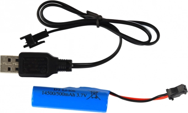 Komplekte yra 3,7 V 500 mAh Li‑ion akumuliatorius ir USB įkroviklis. Įkrovimas iki 2 val., nuvažiuojamas atstumas iki 30 min. vienu įkrovimu.