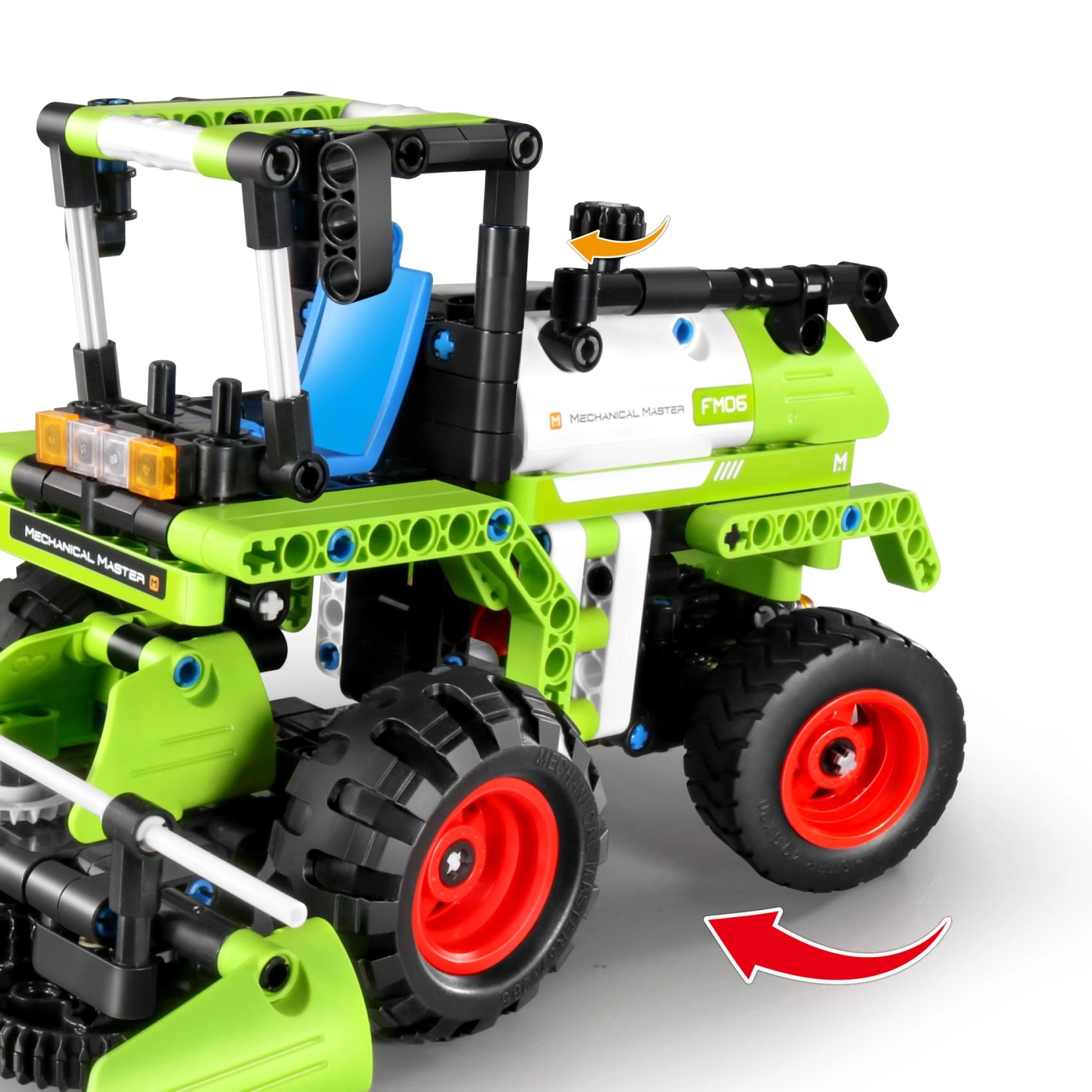 Šis universalus iM.MASTER konstruktorius siūlo du modelius viename – tvirtą kombainą arba visureigį/traktoriuką. Apgalvotos detalės leidžia vaikams statyti pagal instrukciją arba eksperimentuoti vadovaujantis savo fantazija. Puikus pasirinkimas mažiesiems inžinieriams, mėgstantiems techniką ir mašinas.