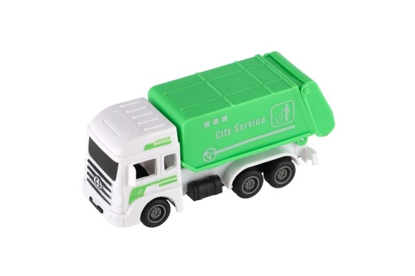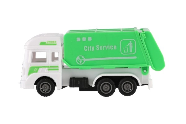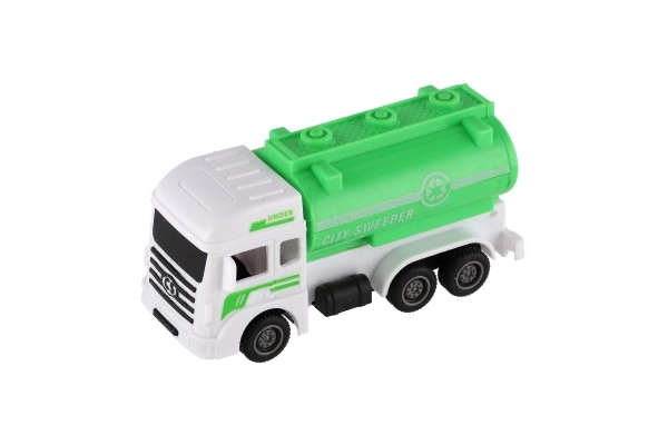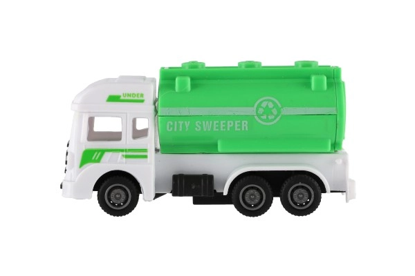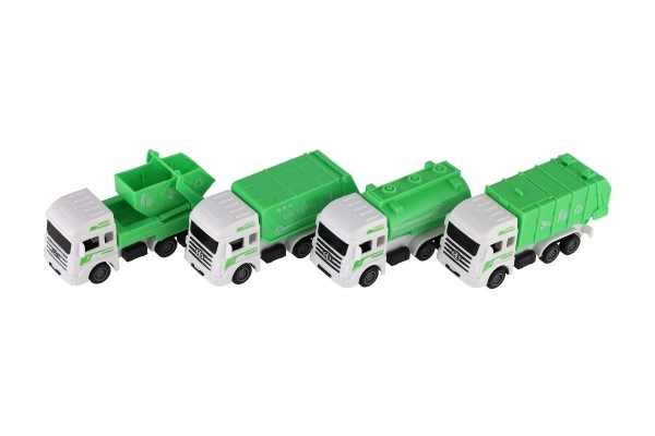 Rinkinyje yra šiukšliavežė, cisterna, gatvių šlavimo mašina ir savivartis. Vaikai gali keisti vaidmenis žaidimo metu.