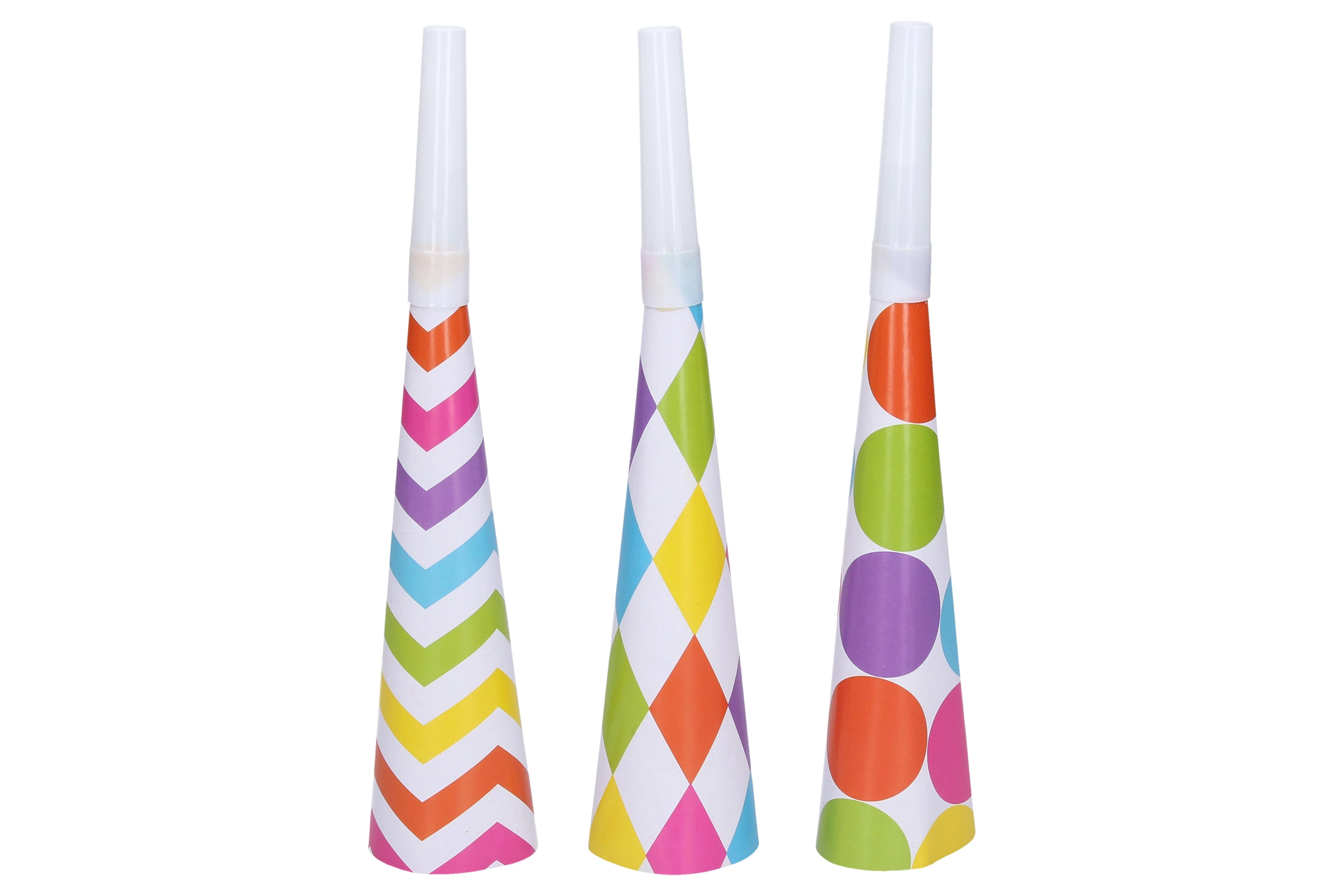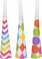 Papuoškite savo vakarėlį šiais spalvingais trimitais ir suteikite jam daugiau žavesio bei džiaugsmo. Puikiai tinka gimtadieniams, šventėms ar kitoms ypatingoms progoms.