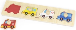Atraskite linksmą medinę dėlionę patiems mažiausiems su gelbėjimo automobilių motyvu, kuri lavina smulkiąją motoriką, akių–rankos koordinaciją ir formų bei transporto priemonių atpažinimą. Dėl medinių rankenėlių dalis lengva suimti net mažoms vaikiškoms rankutėms. Ideali pirmoji edukacinė priemonė nuo 12 mėn.