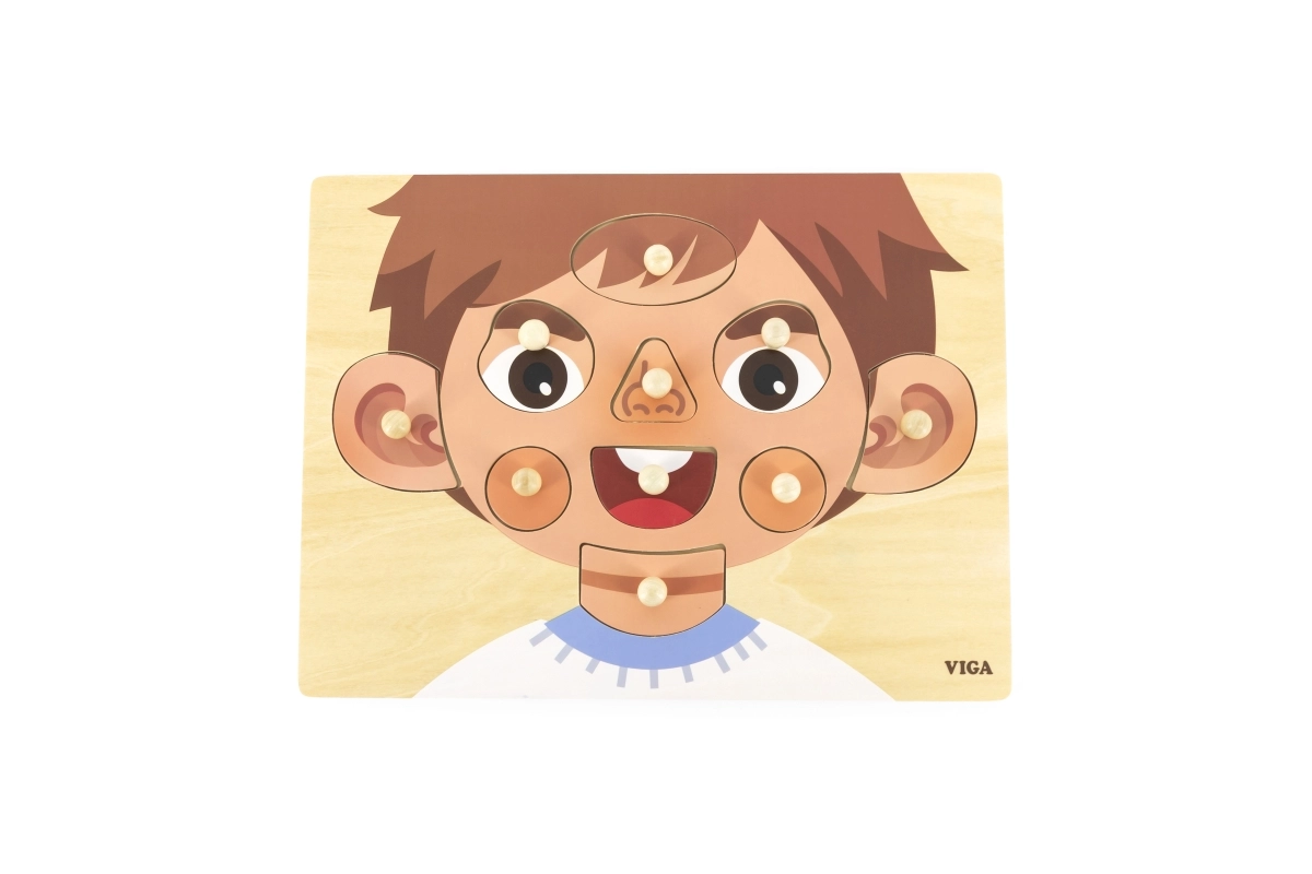Ši medinė dėlionė su veiduko motyvu – ideali priemonė pirmiesiems pasaulio atradimams. Dėl tvirtų medinių detalių su laikikliais vaikai lengvai įsisavins pavadinimus, tokius kaip akys, nosis, burna ar ausys, ir kartu žaismingai treniruos motorinius įgūdžius.