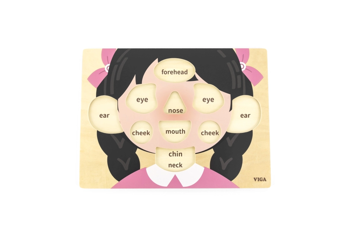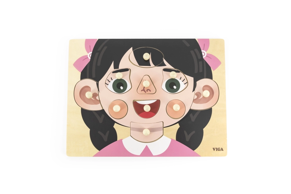 Miela medinė dėlionė su mergaitės motyvu skatina smulkiąją motoriką, susikaupimą ir formų pažinimą patiems mažiausiems. Ideali pirma dėlionė vaikams nuo 18 mėnesių. Natūrali mediena, saugus apdirbimas ir praktiškas formatas 30 × 22 cm, kad būtų lengva paimti ir dėlioti.