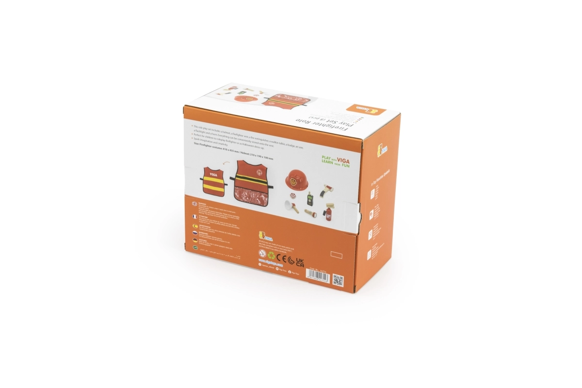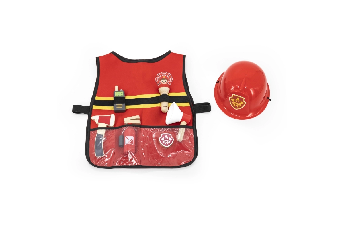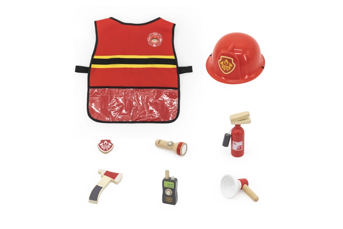 Aštuonių dalių rinkinį sudaro šalmas, gesintuvas, kirvis, megafonas, žibintuvėlis, racija ir ženklelis – viskas autentiškoms gaisrininko misijoms ir fantazijai lavinti.