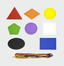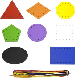 Šis rinkinys palaiko natūralų mokymąsi pagal montessori principus – vaikas veria virveles per paruoštas skylutes, kuria savo raštus ir kartu stiprina suėmimą bei susikaupimą. Spalvotos formos kviečia tyrinėti, virveles patogu laikyti, o veikla maloniai įtraukia tiek namuose, tiek darželyje.