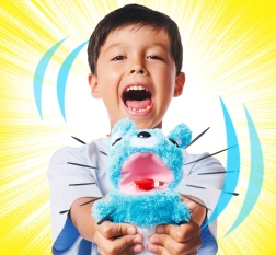 Atraskite linksmą vaikų palydovą – pliušinį meškiną ScreamerZ su pašėlusomis akimis ir juokingais garso efektais. Tiesiog paspauskite pilvuką – pasigirs mielas garsas, stipresnis paspaudimas paleis klyksmą, o dar stipresnis paspaudimas su papurtymu pradės drebantį spiegimą. Minkštutis, lengvas ir idealus glostymui bei žaidimams, aukštis 30 cm.