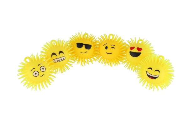 Atsipalaiduokite su spaudžiamu kamuoliuku linksmos šypsenėlės formos. Jis turi minkštą pūkuotą paviršių, malonų elastingumą ir šviečia dėl integruotų baterijų. Siūlo linksmų emoji motyvų miksą ir puikiai tinka poilsiui, susikaupimui ir jutiminei stimuliacijai namuose, mokykloje ar biure.