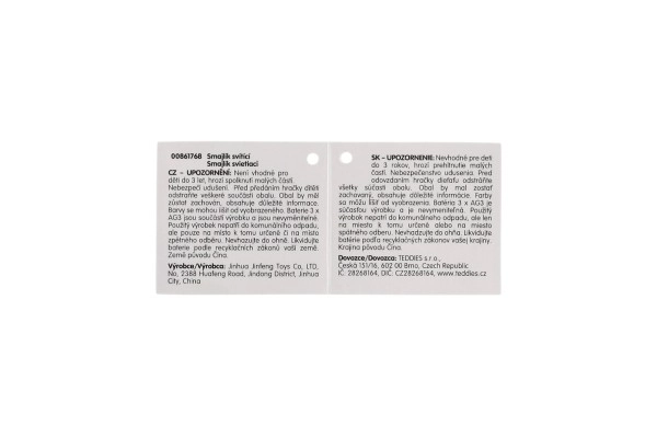 Integruotas šviesos efektas su baterijomis suteikia žaidimui ir poilsiui dar vieną matmenį. Kamuoliukas prieinamas linksmų emoji motyvų mikse, todėl pradžiugins ir vaikus, ir suaugusiuosius. 3× AG3 baterijos įtrauktos ir nekeičiamos. Tinka vaikams nuo 3 metų.