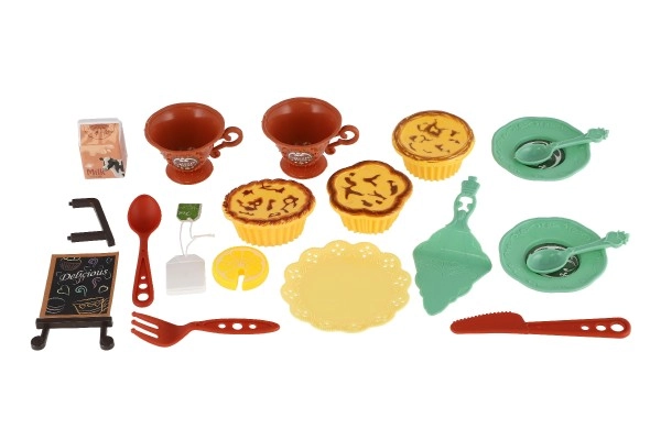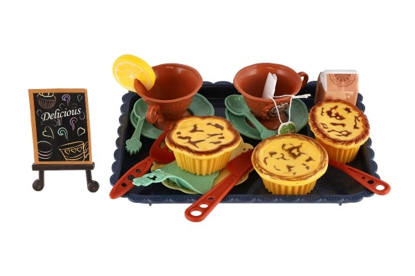 Spalvingas vaikiškas arbatos rinkinys su padėklu suteikia pramogų kiekvienoje vaikiškoje virtuvėlėje. Rinkinyje yra puodeliai, lėkštutės, stalo įrankiai ir mažas desertas tobulam arbatos vakarėliui. Lengvas ir saugus plastikinis rinkinys skatina vaidmeninius kulinarinius žaidimus ir vaikų socialinius įgūdžius nuo 3 metų.