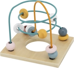 Karoliukų labirintas, gyvūnėlių stumdomas labirintas, krumpliaračiai, formų rūšiuoklis su gyvūnėliais ir pasukamos skaitmenų kaladėlės – viskas visapusiškai raidai.
