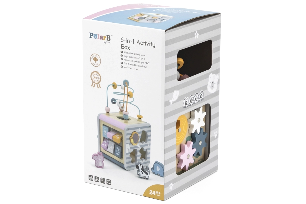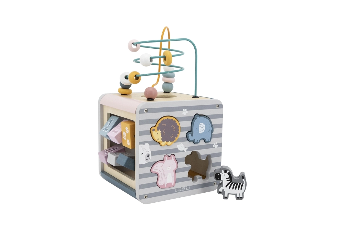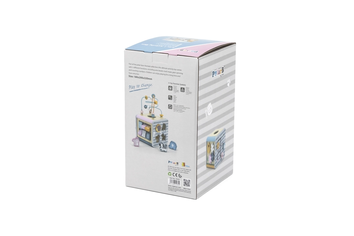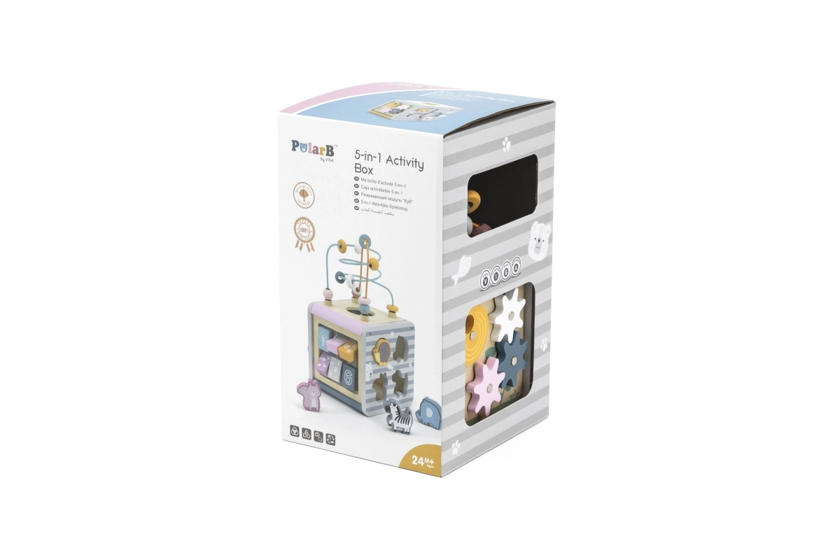 Medinis aktyvus 5-in-1 POLARB kubas – apgalvotas ugdomasis centras vaikams, jungiantis pramogą ir mokymąsi. Kiekviena kraštinė siūlo skirtingą veiklą – nuo karoliukų stumdymo iki krumpliaračių – ir taip natūraliai skatina įgūdžių raidą. Kokybiška mediena ir saugūs dažai užtikrina patvarumą ir saugų žaidimą.