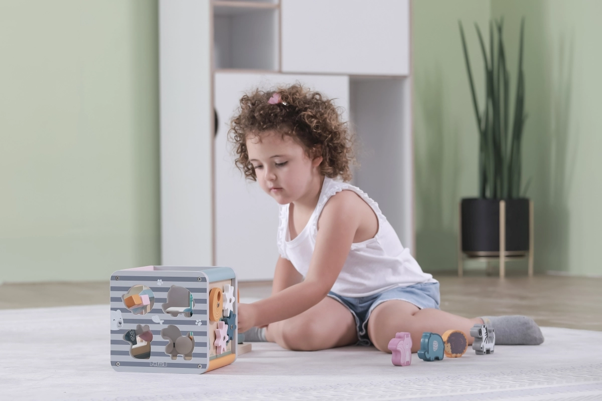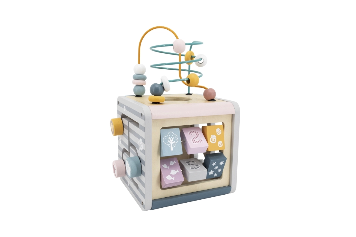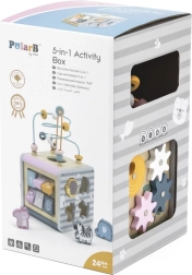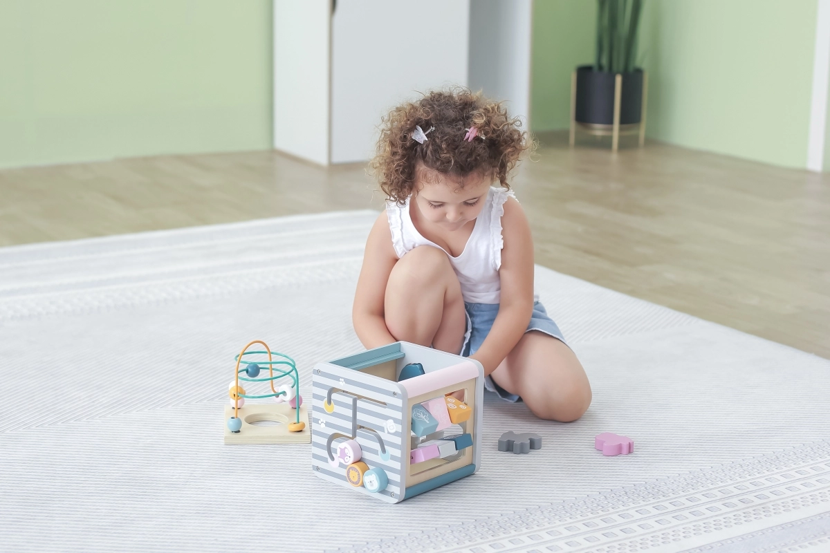 Medinis aktyvus 5-in-1 POLARB kubas – apgalvotas ugdomasis centras vaikams, jungiantis pramogą ir mokymąsi. Kiekviena kraštinė siūlo skirtingą veiklą – nuo karoliukų stumdymo iki krumpliaračių – ir taip natūraliai skatina įgūdžių raidą. Kokybiška mediena ir saugūs dažai užtikrina patvarumą ir saugų žaidimą.