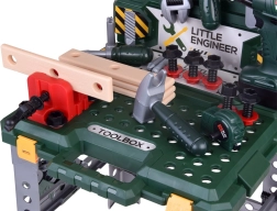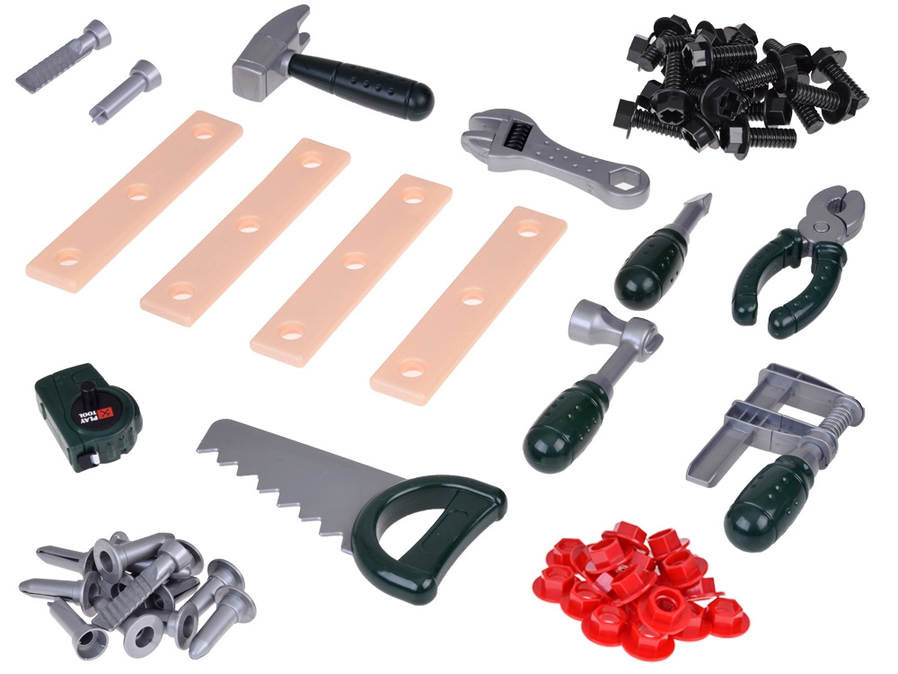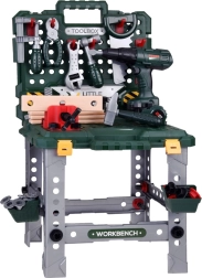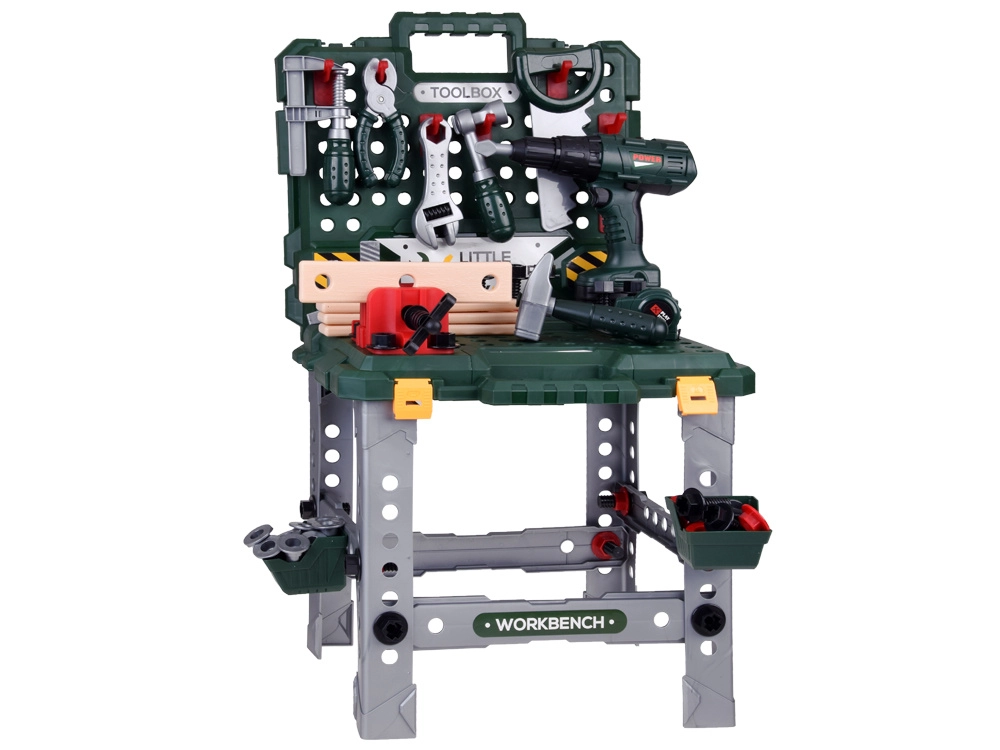 Stabilios vaikiškos dirbtuvės su gausia komplektacija skatina savarankiškumą ir kūrybišką žaidimą. Idealiai tinka mėgdžioti suaugusiųjų veiklas ir lavinti įgūdžius.