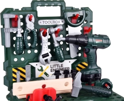 Atraskite daugiafunkcį vaikišką dirbtuvių rinkinį, kuris lavina smulkiąją motoriką, kūrybiškumą ir vaizduotę. Stabilus darbo stalas su gausia komplektacija ir akumuliatoriniu grąžtu leidžia mažiesiems meistrams mėgdžioti suaugusiuosius ir saugiai mokytis pagrindinių darbo su įrankiais įgūdžių. Rinkinys turi ir išmanų sulankstomą sprendimą į lagaminėlį, kad būtų lengva laikyti ir nešiotis.