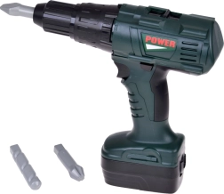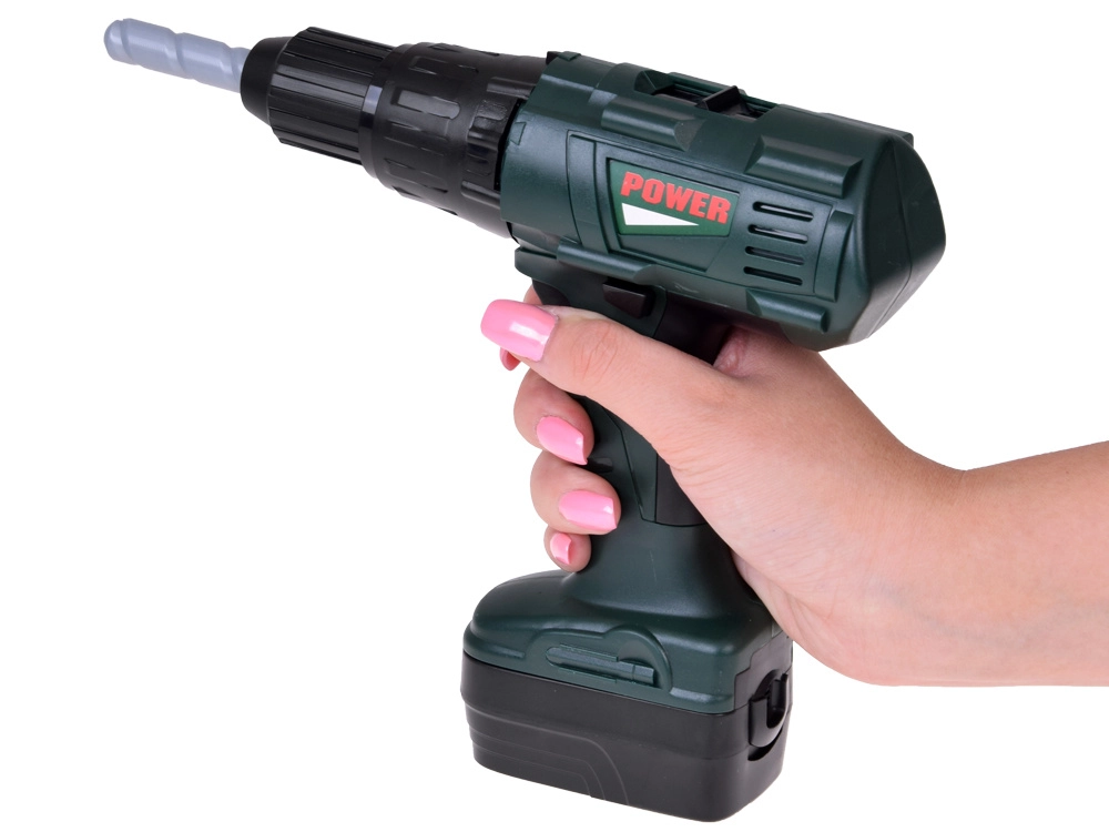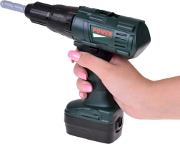 Lengvas plastikinis grąžtas, veikiantis su 2× AA baterijomis, leidžia vaikams saugiai sukti varžtus ir lavinti koordinaciją. Pridedami keičiami antgaliai.