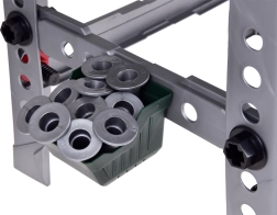 Po žaidimo visą rinkinį lengvai sudėsite į kompaktišką lagaminėlį. Integruoti skyriai tvarkingai laiko varžtus, veržles ir įrankius savo vietose.