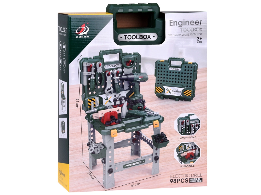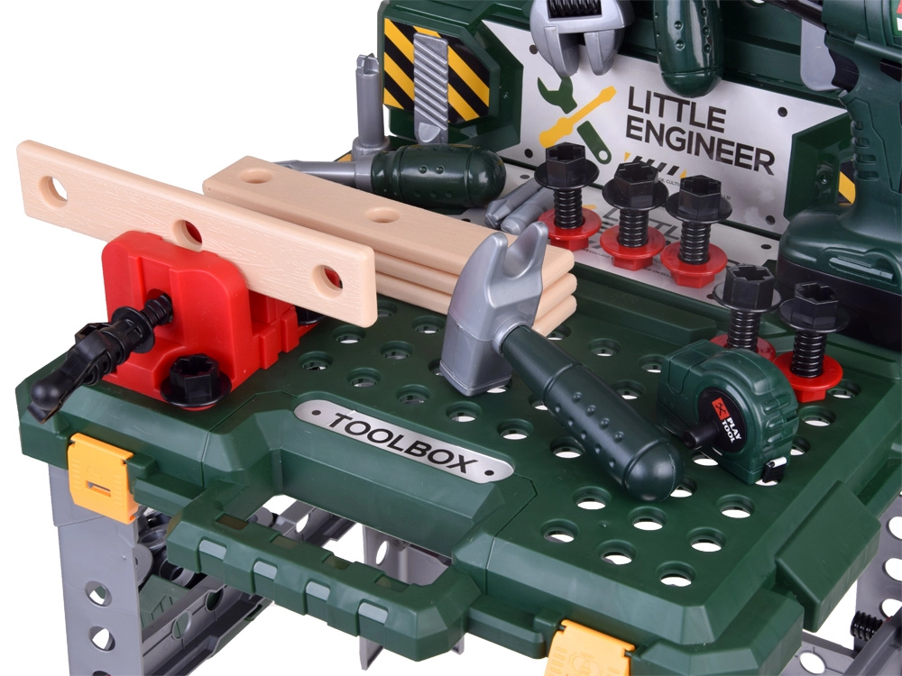 Šios realistiškos vaikiškos dirbtuvės puikiai tiks mažiesiems mechanikams, norintiems pažinti meistravimo pasaulį. Dėl įvairios įrankių ir priedų gausos vaikai lavins akių–rankų koordinaciją, kantrybę ir loginį mąstymą. Akumuliatorinis grąžtas lengvai valdomas ir suteikia autentišką varžtų sukimo patirtį.