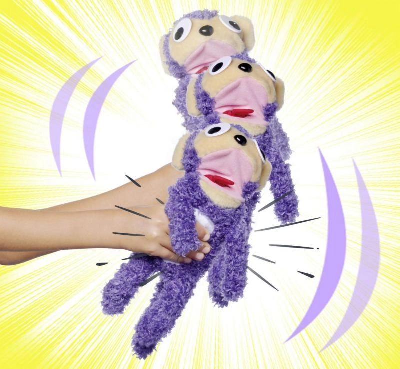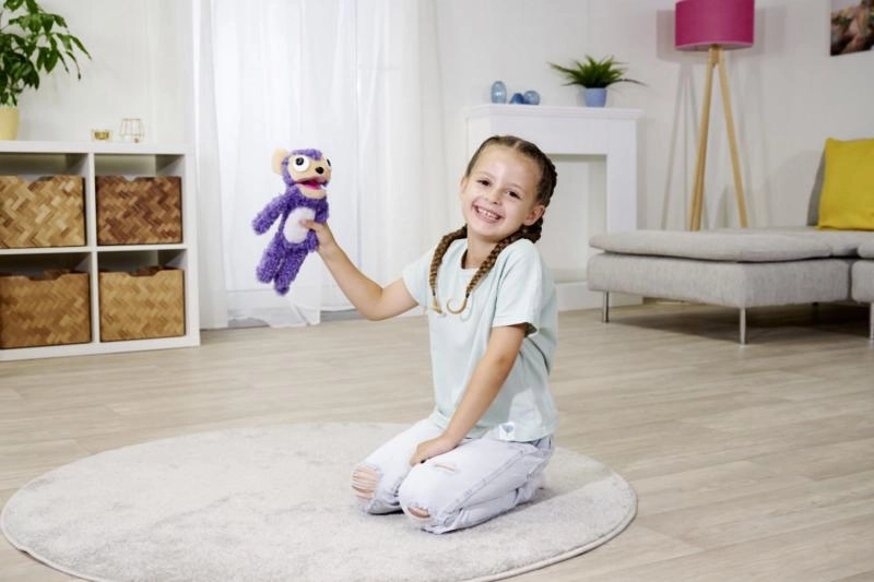 Susipažinkite su ScreamerZ, 30 cm aukščio violetine pliušine beždžionėle, kuri džiugina visų kartų žaidėjų interaktyvumu:
