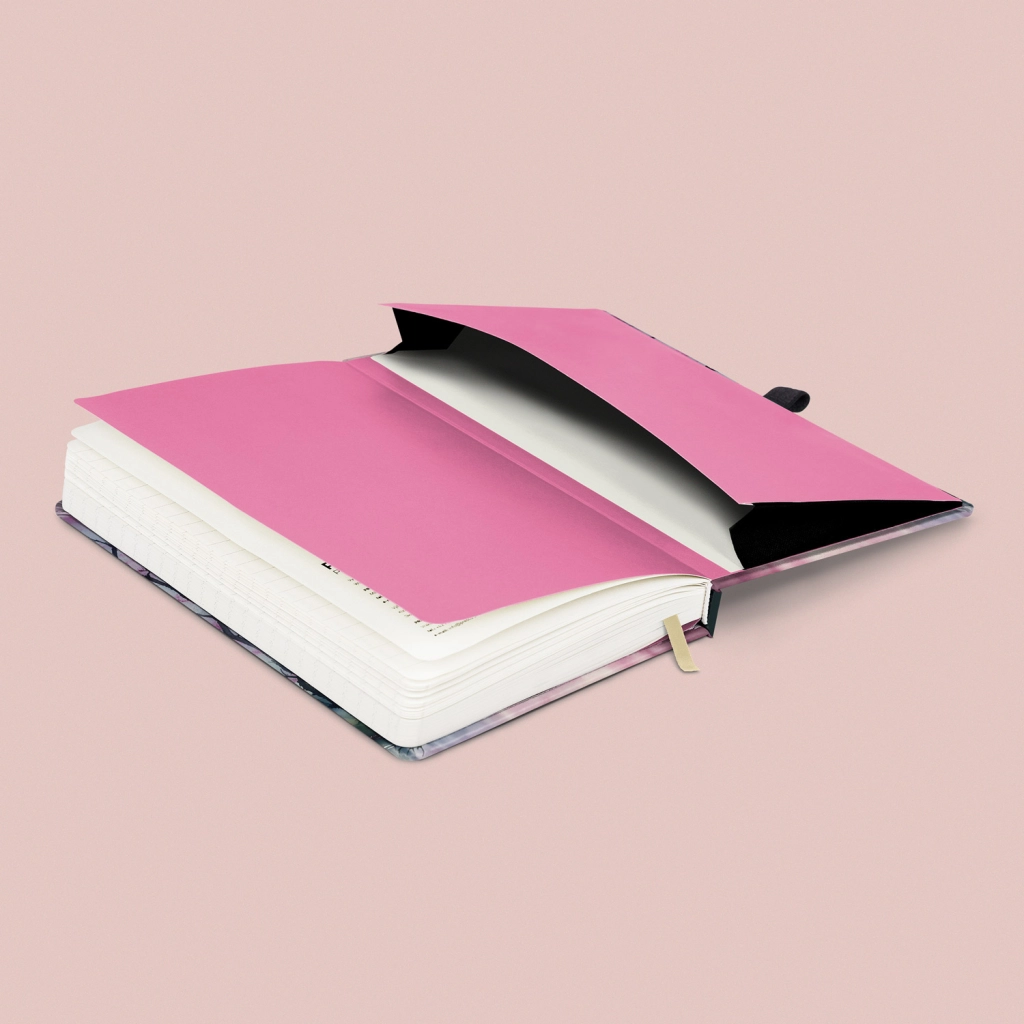 Stilinga NOTIQUE užrašų knygutė su sakurų motyvu idealiai tinka kasdieniam rašymui. Dėl kietų viršelių ir užsegimo su gumyte turinys išliks saugus, o rašiklio kilpelė ir praktiška vidinė kišenė palengvina smulkmenų organizavimą.