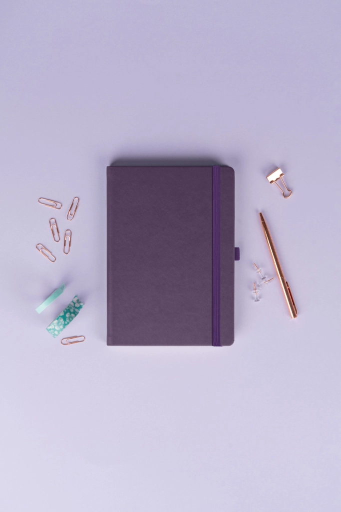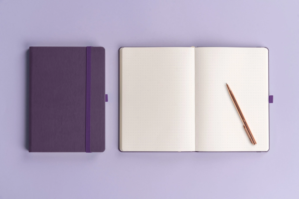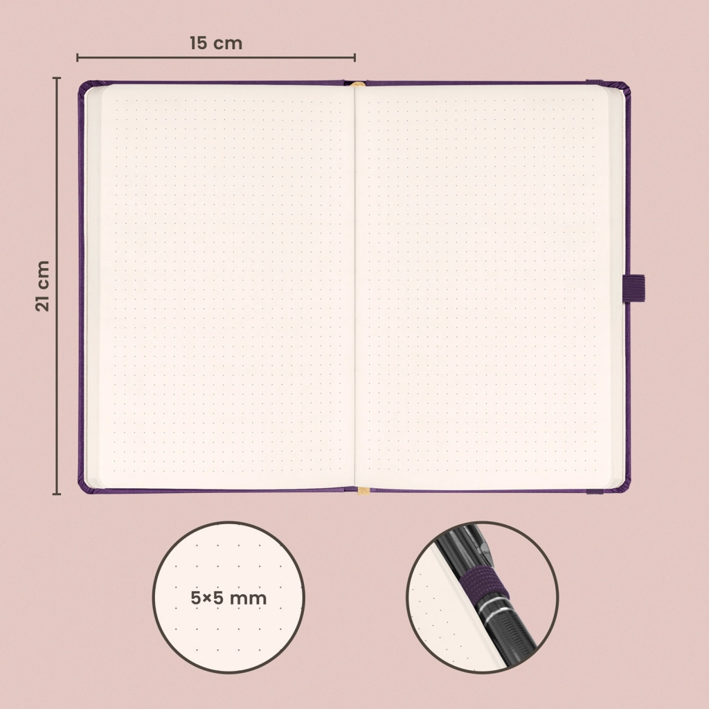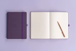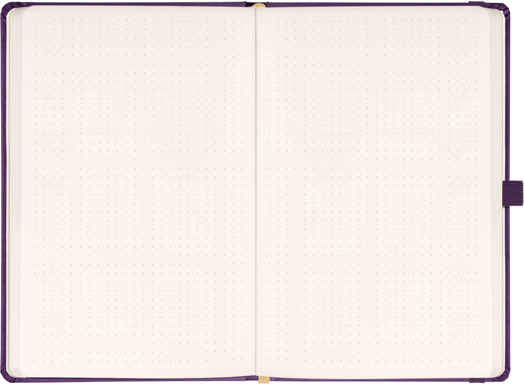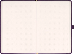 Stilinga taškuota užrašinė NOTIQUE Aprint Neo violetinės spalvos derina klasiką ir eleganciją. Ji turi švelniai faktūruotą paviršių, ant kurio galima lengvai įspausti įmonės logotipą, ir praktišką 15 × 21 cm formatą kasdieniam rašymui, planavimui bei eskizams.