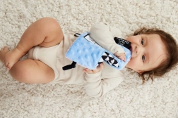 Kilimėlis turi daug skirtingų tekstūrų, kurios skatina lytėjimo pojūtį ir padeda lavinti smulkiąją motoriką.