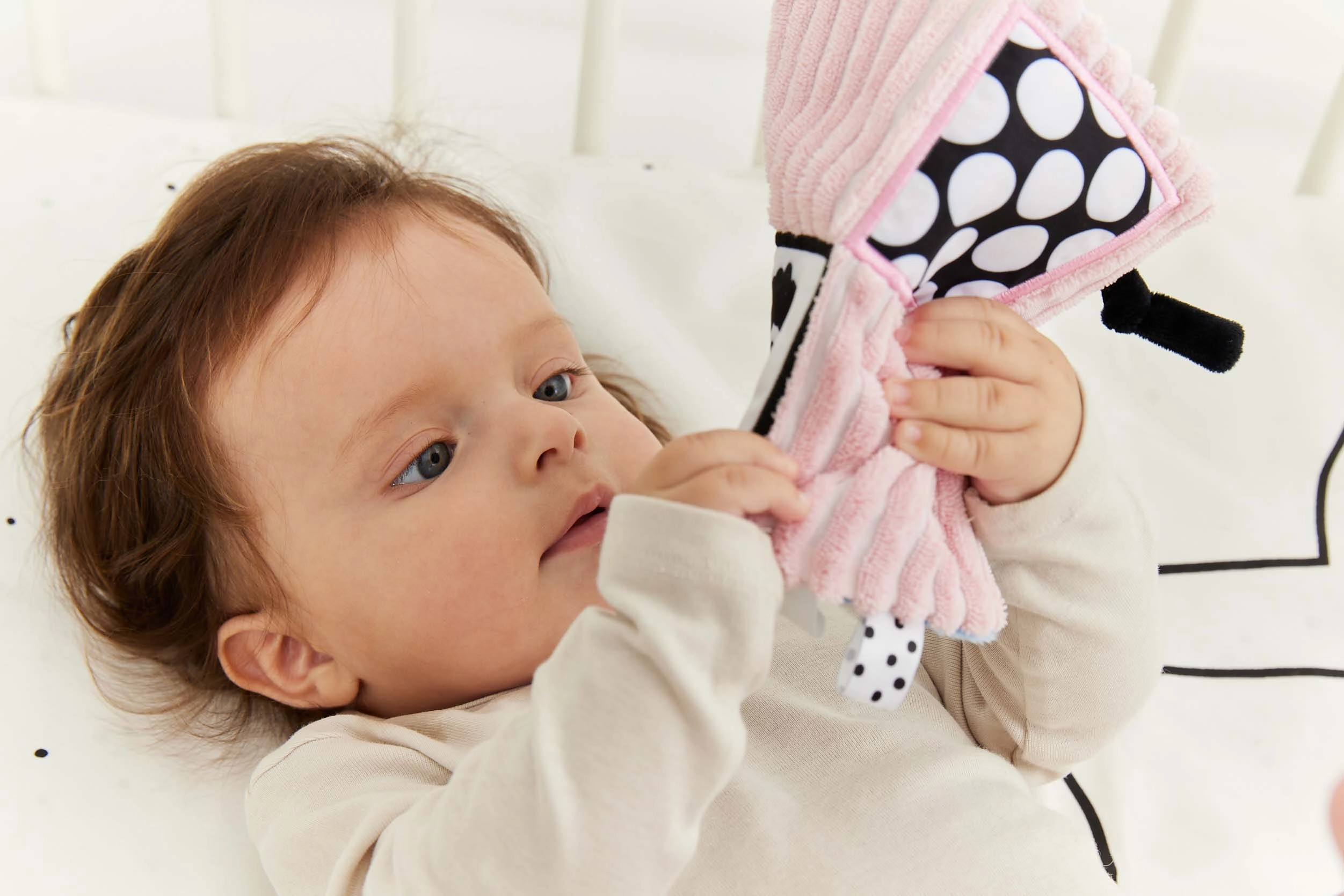 Vidinis šlamantis audinys suteikia klausos stimulaciją, idealiai tinkančią vaiko klausos įgūdžių lavinimui.