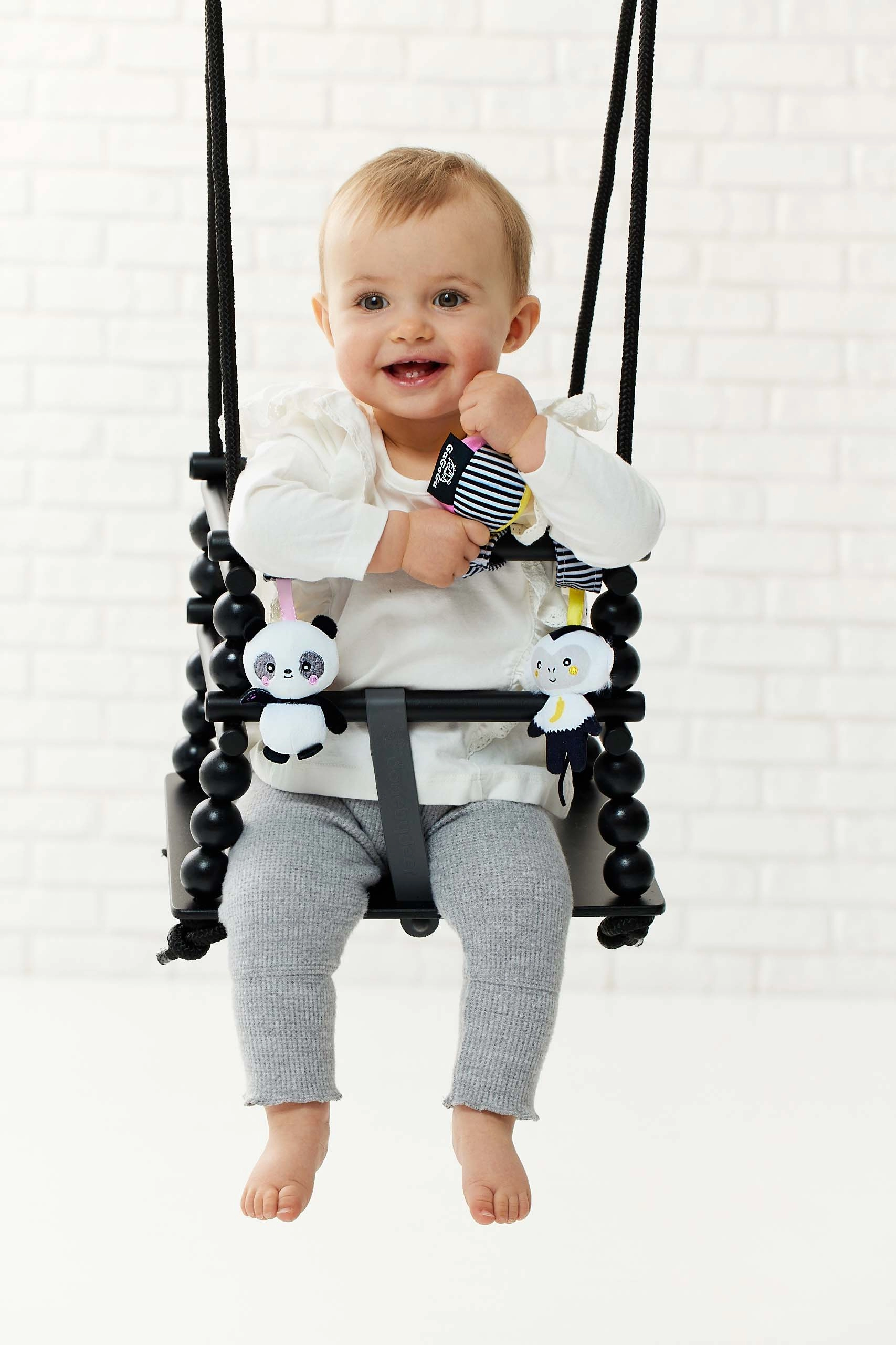 Kabantis pliušinis žaislas GaGaGu pasižymi kontrastingomis spalvomis ir raštais, kurie stimuliuoja vaiko regą. Pliušiniai elementai skatina griebimą, lavina smulkiąją motoriką ir judesių koordinaciją.
