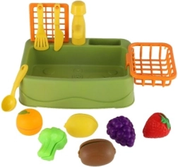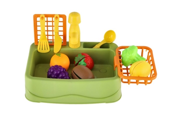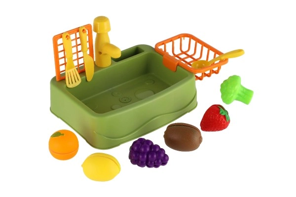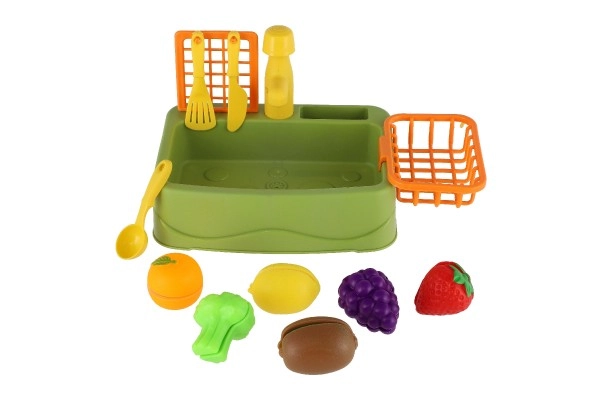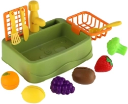 Vaikiška virtuvės kriauklė su vaisiais suteikia tikrovišką buities žaidimą. Dėl pompos čiaupo vaikai gali cirkuliuoti vandenį ir mėgdžioti tikrą plovimą. Rinkinį papildo pjaustomi vaisiai ir praktiški stalo įrankiai, tad mažieji virėjai įveiks viską – nuo paruošimo iki tvarkymo.