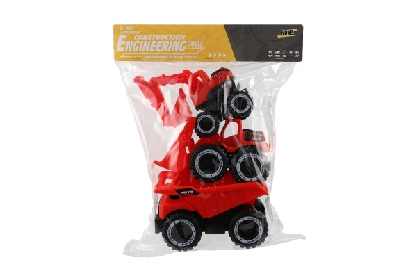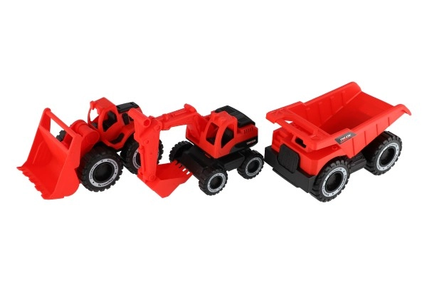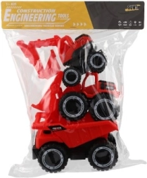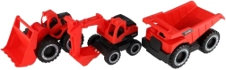 Ši universali rinkinio sudėtis – trys patvarios plastikinės mašinos: ekskavatorius, krautuvas ir savivartis – suteiks vaikams valandų valandas kūrybiško žaidimo. Dėl laisvosios eigos transporto priemonės lengvai pajuda nuo lengvo stumtelėjimo, o judančios dalys (kaušas, strėlė, kėbulo dėžė) suteikia žaidimui tikroviškumo.