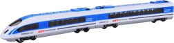Nuotoliniu būdu valdomas traukinys elegantiškos baltos spalvos tikroviškai atkuria modernų greitaeigį. 65 cm ilgis atrodo įspūdingai, o važiuojant išryškėja šviesos efektai, kurie suteikia žaidimui autentiškumo, ypač prietemoje. Ergonomiškas pultelis leidžia sklandžiai judėti pirmyn ir atgal bei patogiai manevruoti.