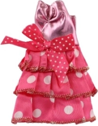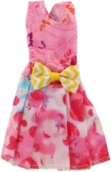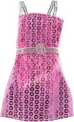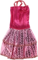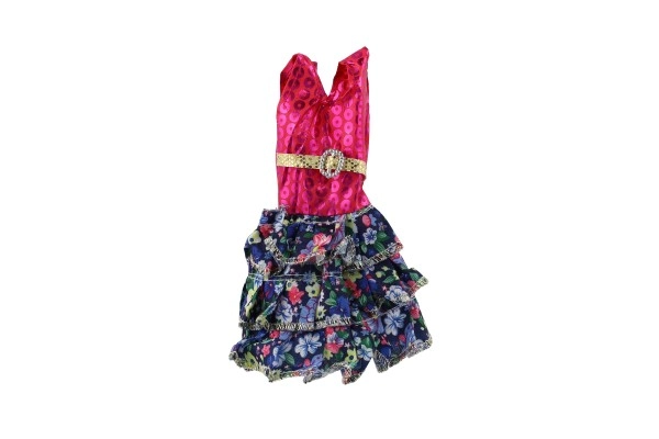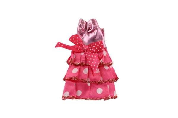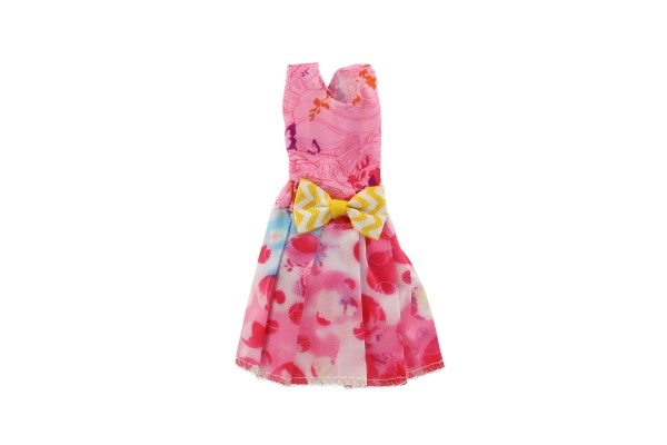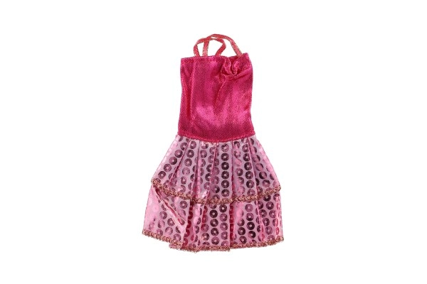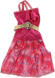 Ši rožinė suknelė su dekoratyviniu auksiniu dirželiu ir raštuotomis detalėmis tobulai papuoš kiekvieną lėlę.