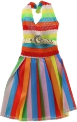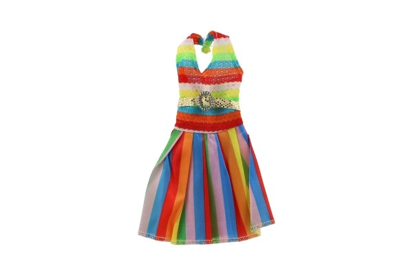 Spalvinga suknelė su vaivorykštės juostomis siūlo unikalų elegancijos ir žaismingumo derinį, idealiai tinkantį kasdienai ar šventinėms akimirkoms.