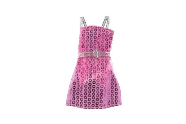 Rožinė suknelė su blizgančiu sidabriniu dirželiu ir petnešėlėmis suteikia lėlei prabangos ir stiliaus įspūdį.