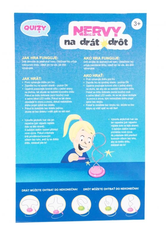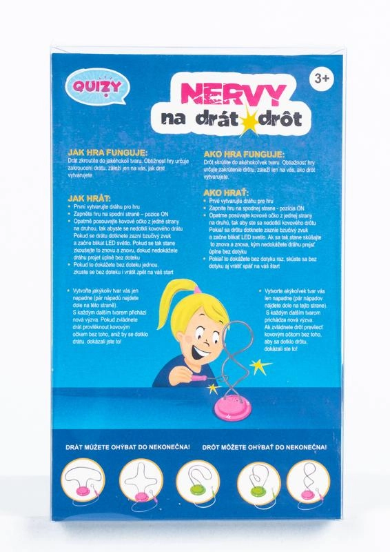 QUIZY Nervai ant vielos – tai žaislas, kuris ne tik linksmina, bet ir lavina įgūdžius. Prie plastikinio pagrindo pritvirtinta metalinė kilpa leidžia žaidėjams keisti formą ir kaskart patirti naują iššūkį. Šis žaidimas – puikus būdas gerinti rankų ir akių koordinaciją.
