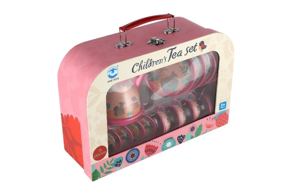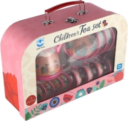 Mielas vaikiškas skardinis arbatos rinkinys patogiame lagaminėlyje pradžiugins kiekvieną mažąją šeimininkę. Sudaro 15 dalių arbatos popietės žaidimams – puikiai tinka tiek savarankiškam žaidimui, tiek pramogoms su draugais. Skatina vaizduotę, lavina socialinius įgūdžius, o dėl spalvingo dizaino vaikai jį greitai pamilsta.