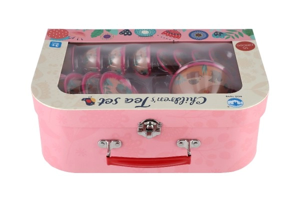 Arbatos rinkinys sudėtas į tvirtą lagaminėlį su rankenėle ir metaliniu užsegimu. Vaikai gali jį neštis visur ir po žaidimo lengvai susitvarkyti.