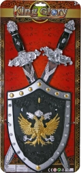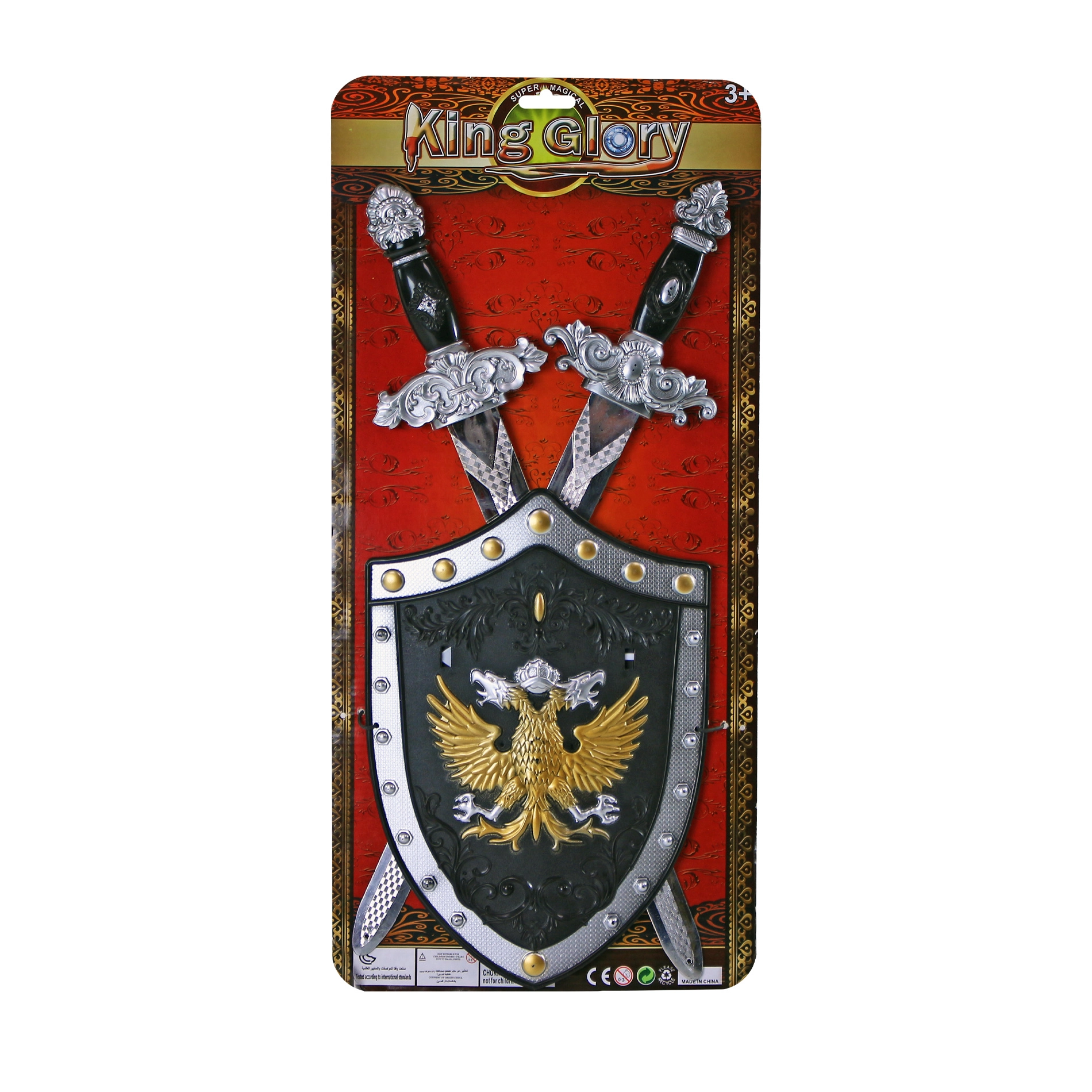 Rinkinys sukurtas saugiam linksmumui: plastikinė konstrukcija sumažina susižalojimo riziką ir kartu išlaiko patrauklią išvaizdą. Du kardai leidžia žaisti poroje arba derinti kovos stilių su skydu.