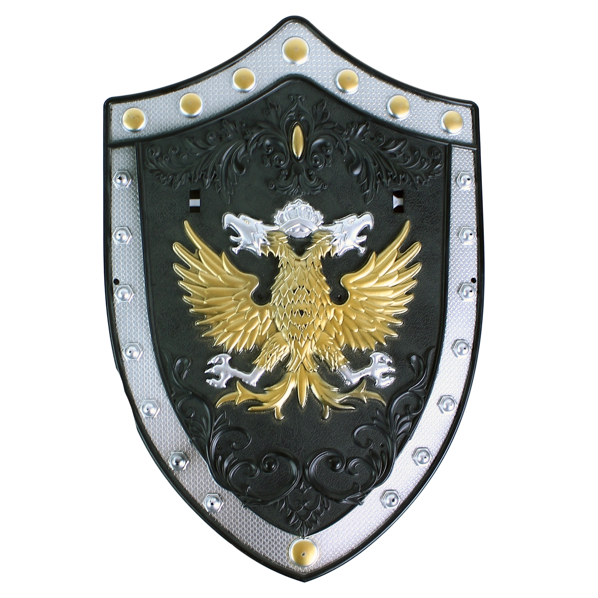 Skydas su ryškiu auksiniu dviagalviu ereliu ir ornamentais suteikia riteriškai aprangai autentišką išvaizdą ir apsaugą kiekviename mūšyje.