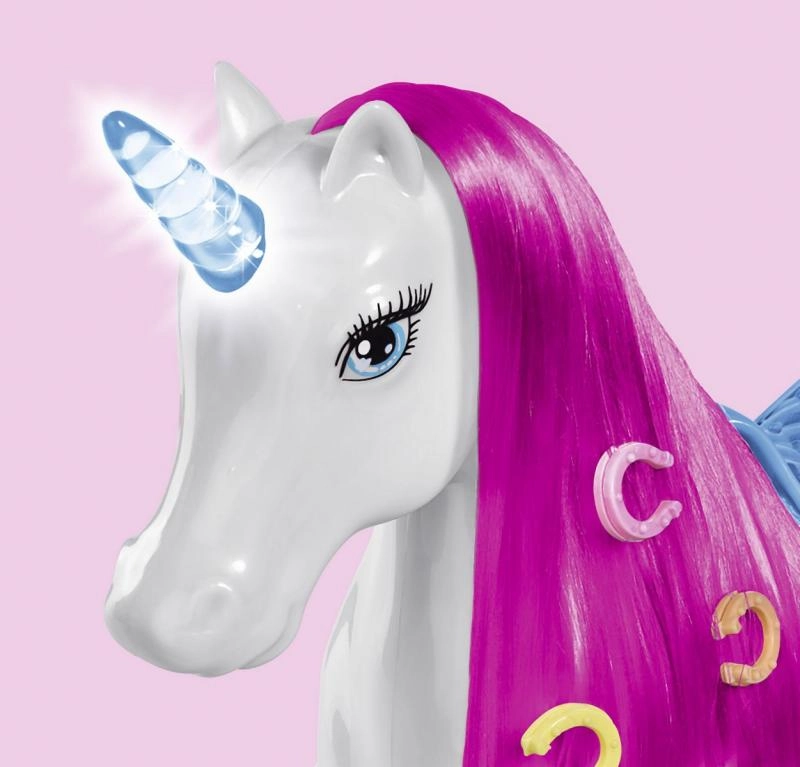 Atraskite magišką, fantazijos kupiną pasaulį su šiuo vienaragiu lėlei Steffi. Tobulas Jūsų lėlės palydovas su šviečiančiu ragu, kuris kiekvienam žaidimui suteiks magišką atmosferą.