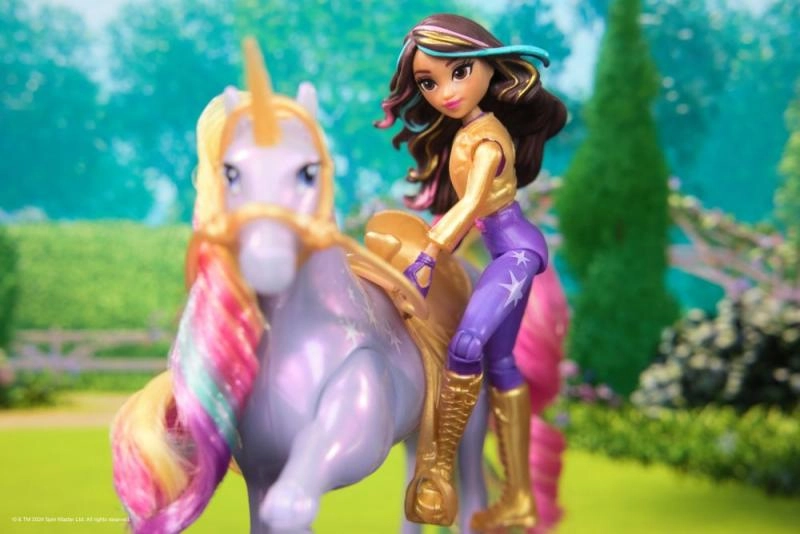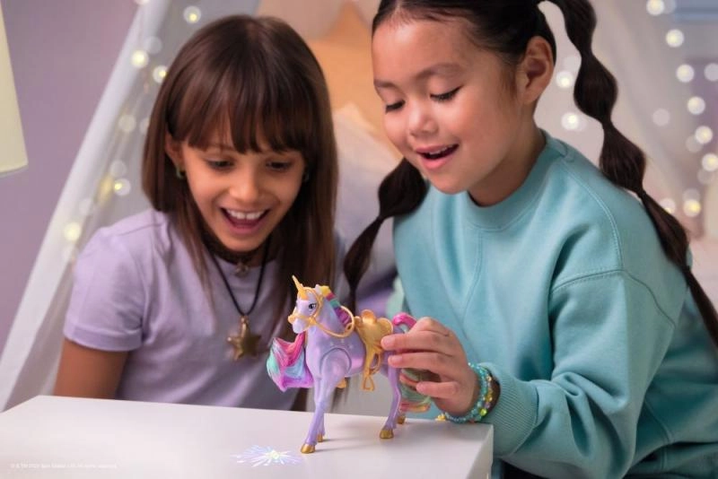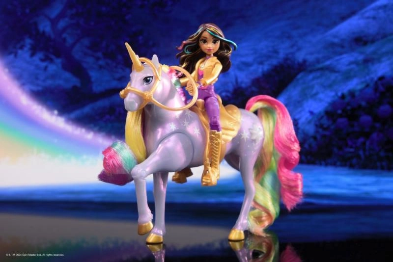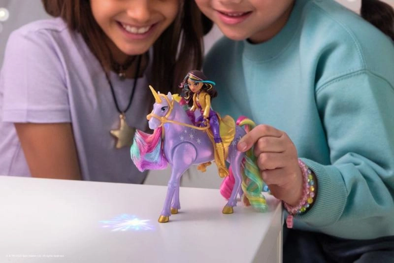 Atskleiskite Vienaragių akademijos pasaulio magiją su pora Sofija ir vienaragis Wildstar. Šis rinkinys, įkvėptas Netflix serialo ir bestselerių knygų, pasižymi žėrinčiais šviesos efektais, minkšta vaivorykštine karčiais ir uodega bei judria lėle, kad būtų lengva pozuoti balne. Paspauskite žvaigždės formos mygtuką ir stebėkite, kaip Wildstar „patrypia“ ir projektuoja vaivorykštinį raštą – lygiai kaip istorijoje.