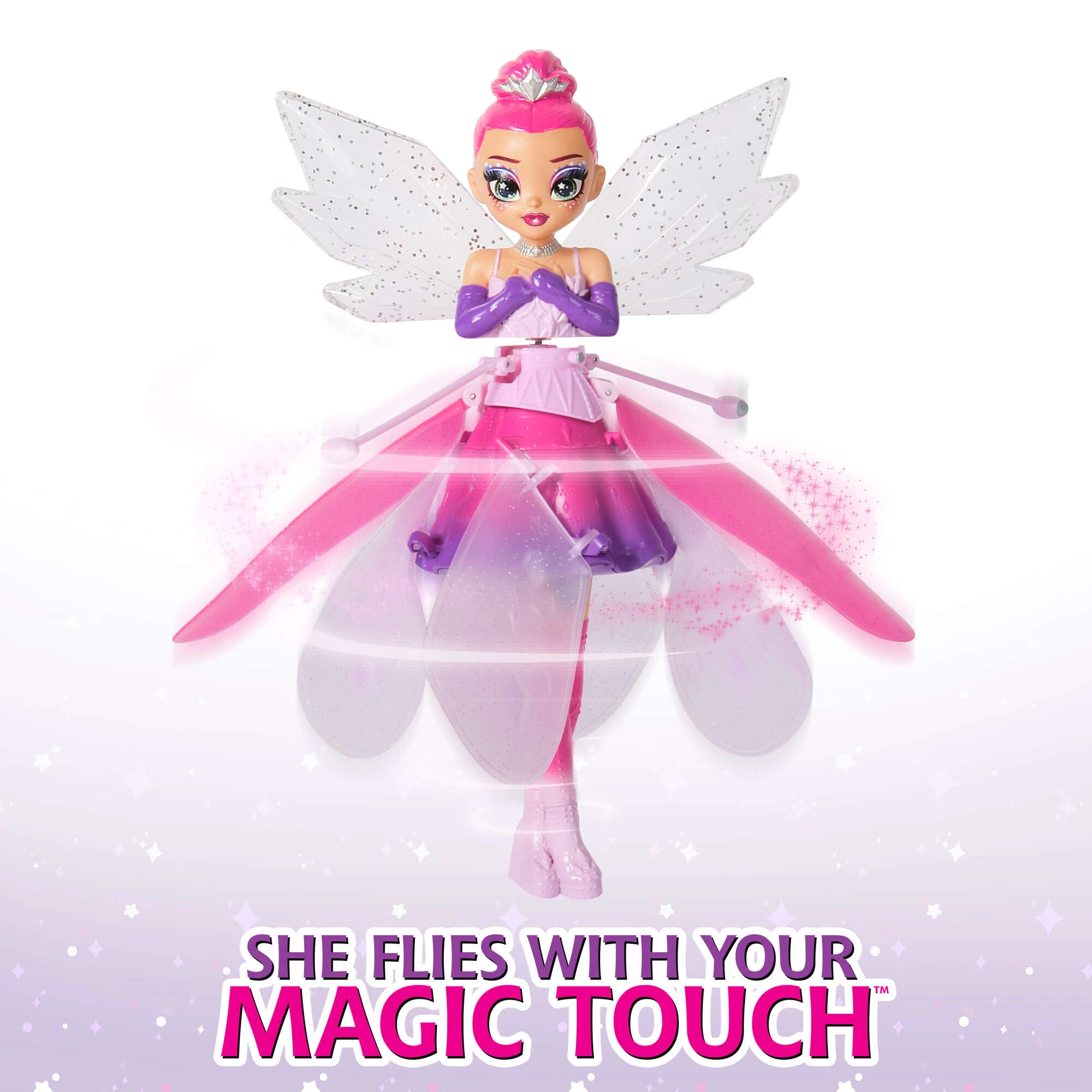 Skraidanti lėlė HATCHIMALS Crystal Flyers pavers bet kurį kambarį stebuklinga scena. Įjungus fėja ima suktis ir grakščiai pakyla. Dėka integruotų judesio jutiklių ji reaguoja į jūsų rankas, todėl galite lengvai ją nukreipti ore ir leisti šokti virš delnų. Pagaminta iš patvarių ir saugių medžiagų, tinkamų kasdieniams žaidimams.