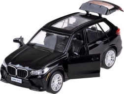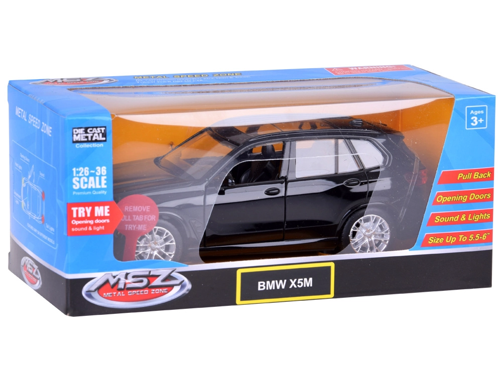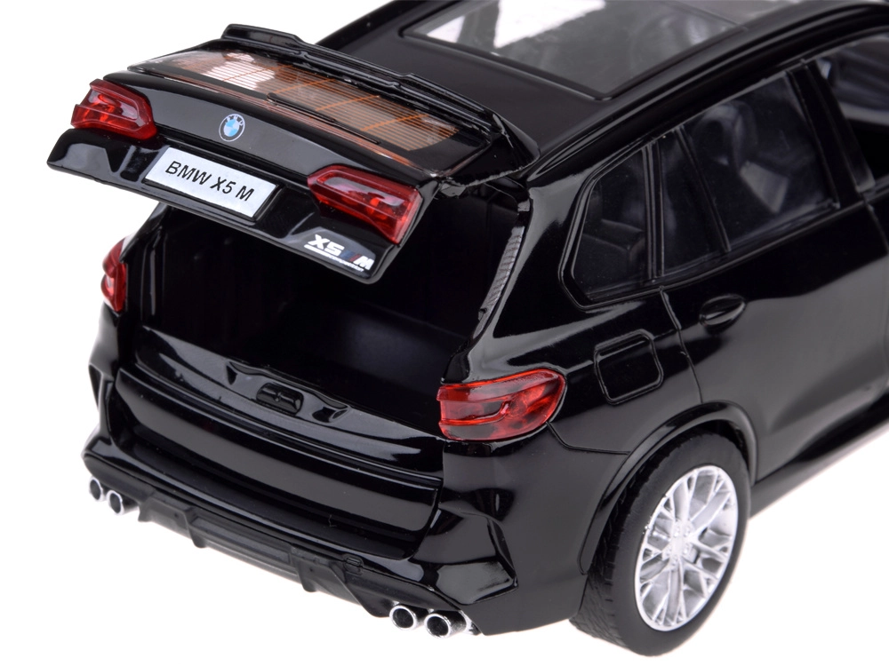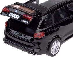 Šis preciziškai sukurtas BMW X5 M modelis, tinkamas tiek žaidimui, tiek ekspozicijai, derina tvirtą metalinę karoseriją su detaliu interjeru, kurį matyti ir per stogo langą. Modelis siūlo realistines funkcijas: atidarius duris išgirsite signalo garsą ir aliarmą, prispaudus prie paviršiaus įsijungia variklio užvedimo ir darbo garsai. Efektus papildo priekiniai ir galiniai žibintai bei apšviesti prietaisai.