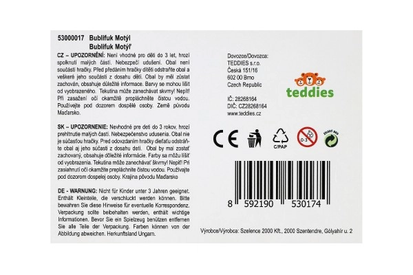 Drugelio formos burbulų pūtiklis yra ideali žaislas, kuris sudomina vaikus ne tik savo vaivorykštine išvaizda, bet ir paprastu naudojimu. Viršutinėje dalyje yra linksmas galvosūkis su kamuoliuku, padedantis lavinti vaikų smulkiąją motoriką.
