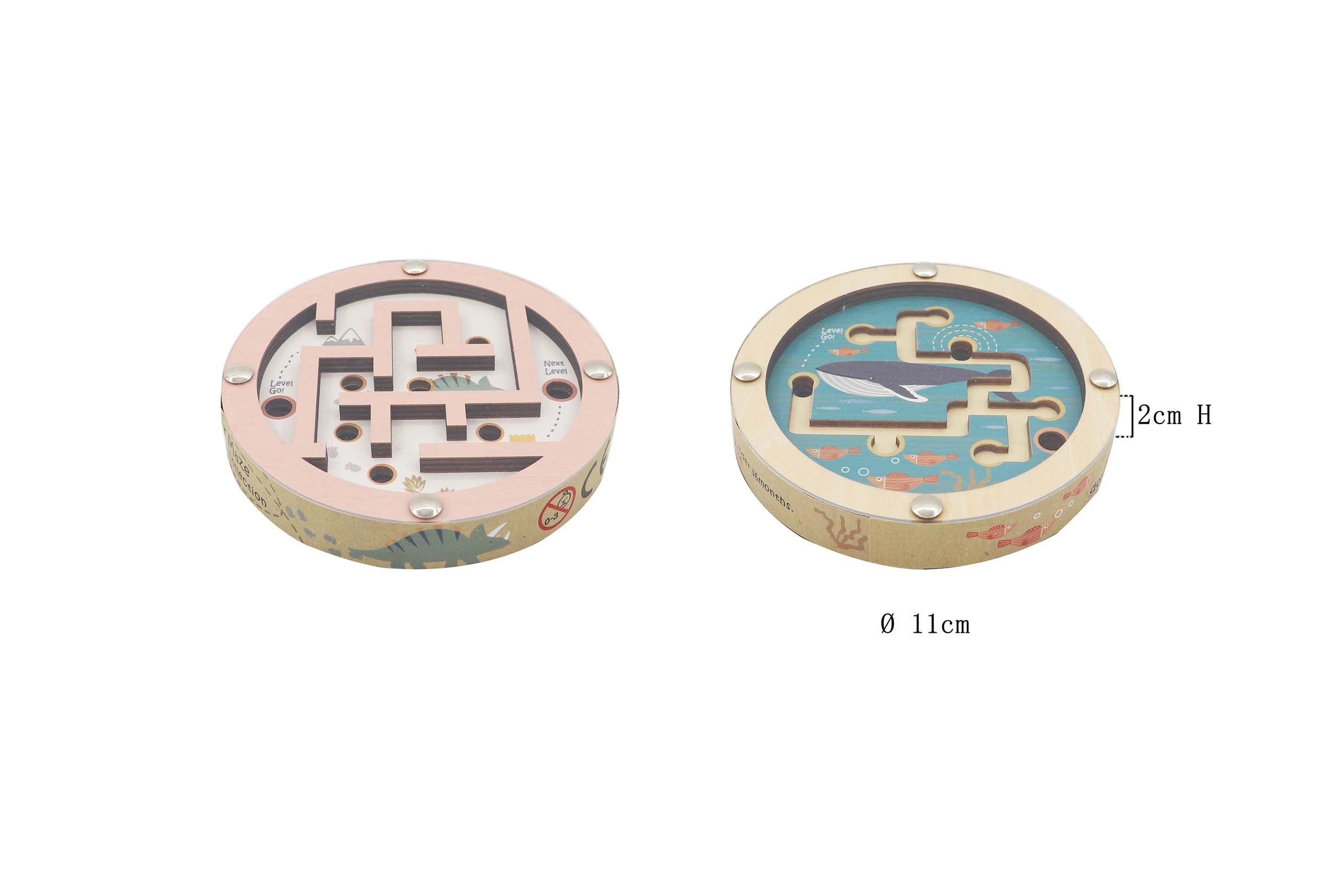 Mėgaukitės valandomis pramogų su šiuo dvipusiu mediniu rutuliukų žaidimu, kuris patiks ir vaikams, ir suaugusiesiems dėl gražių jūros ir dinozaurų dizainų. Žaidimas idealiai tinka smulkiajai motorikai, susikaupimui ir kantrybei lavinti. Jame yra du skirtingi žaidimo paviršiai, pritaikyti skirtingiems sunkumo lygiams.