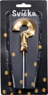 Auksinė vakarėlio žvakė klaustuko formos – puiki dekoracija bet kokiai šventei, suteikianti jūsų vakarėliui elegancijos ir originalumo.