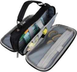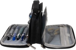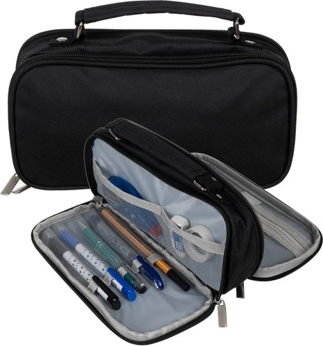 Atskirkite rašymo priemones, aksesuarus ir elektroniką. Dvikrypčiai užtrauktukai leidžia greitai ir patogiai atidaryti iš abiejų pusių.
