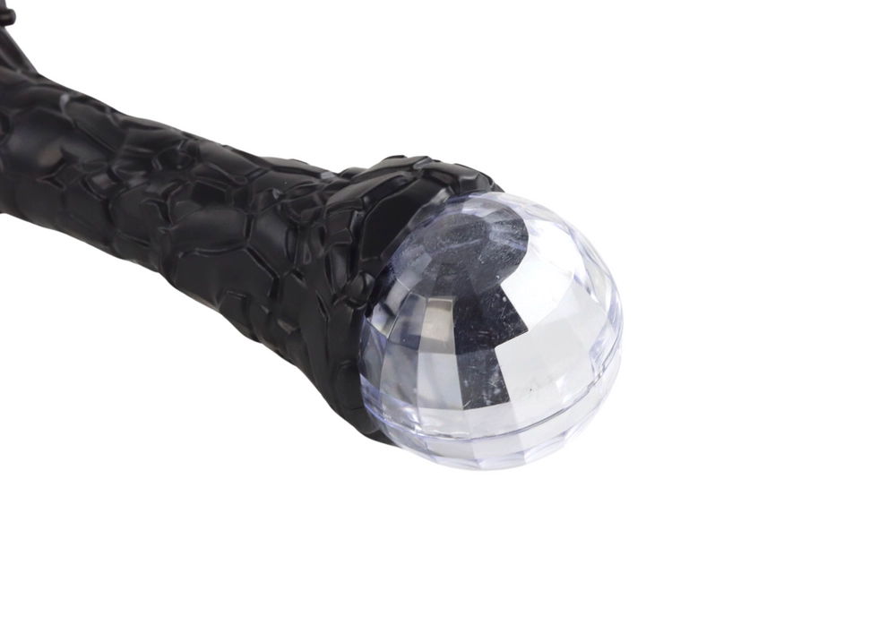 Skaidrus, fasetuotas rutulys kuria patrauklius šviesos efektus ir papildo futuristinę kardo išvaizdą.