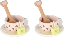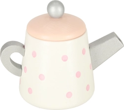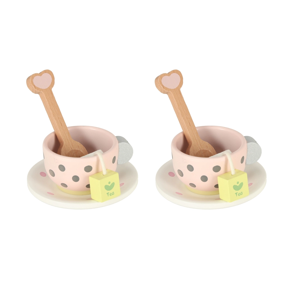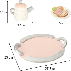 Medinė arbatos rinkinys pasižymi žaviu pasteliniu dizainu su subtiliais taškeliais, kuris traukia vaikų dėmesį ir skatina žaisti.
