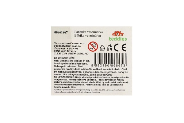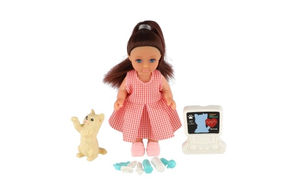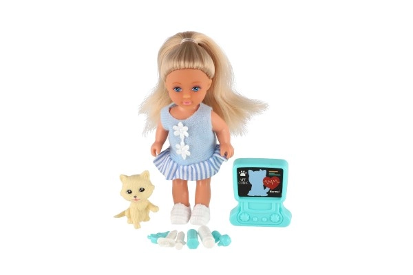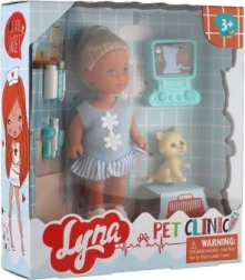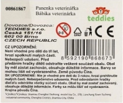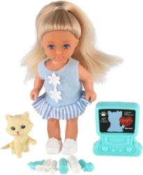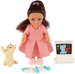 Veterinarė lėlytė turi tvirtą kūną, jos aukštis apie 11 cm. Vaikai gali išbandyti veterinaro vaidmenį su rinkiniu, kuriame yra visi būtini veterinarinės priežiūros priedai – viskas, ko reikia jų pliušinių pacientų apžiūrai ir gydymui.